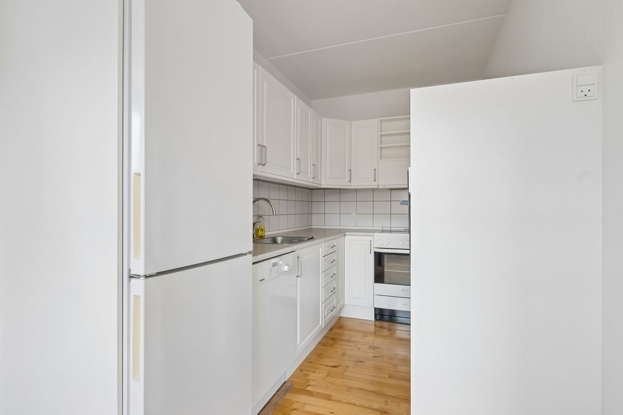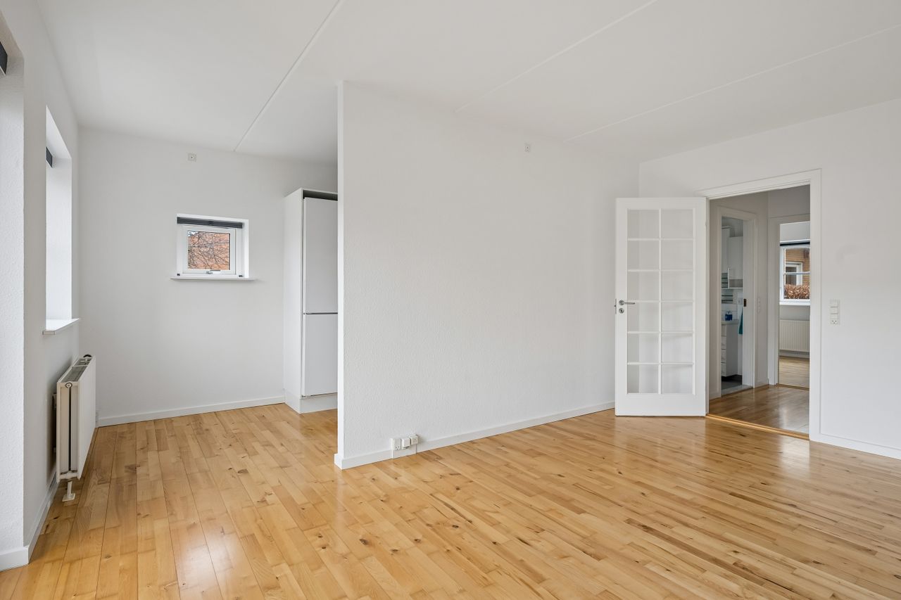 Indretningen er gennemtænkt og udnytter kvadratmeterne optimalt, hvilket gør boligen velegnet til både par, singler eller den lille familie.