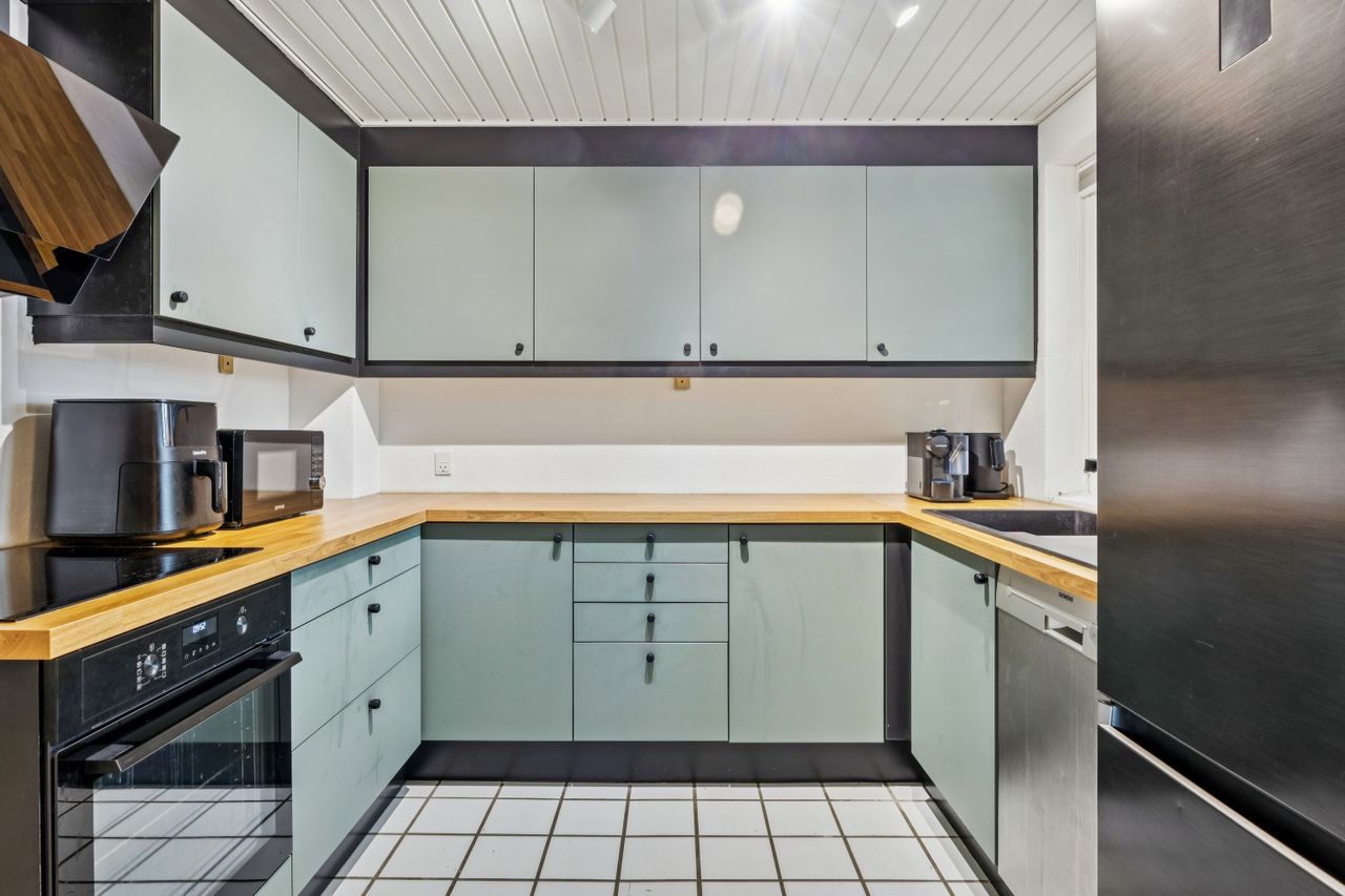 Indvendigt er der arbejdet med både funktion og finish. Der er opsat I-Wood akustiske træpaneler, vægge er armeret mod revner i gasbeton og afsluttet med ny filt, hvilket giver et moderne og stilrent udtryk. Hvidevarerne er opdaterede, og boligen fremstår generelt velholdt og klar til indflytning. I efteråret 2021 blev loftlemmen udskiftet til en større model med trappestige, så loftsrummet er let tilgængeligt. Skabslåger til soveværelset samt dør mellem entré og køkken medfølger og ligger på loftet.