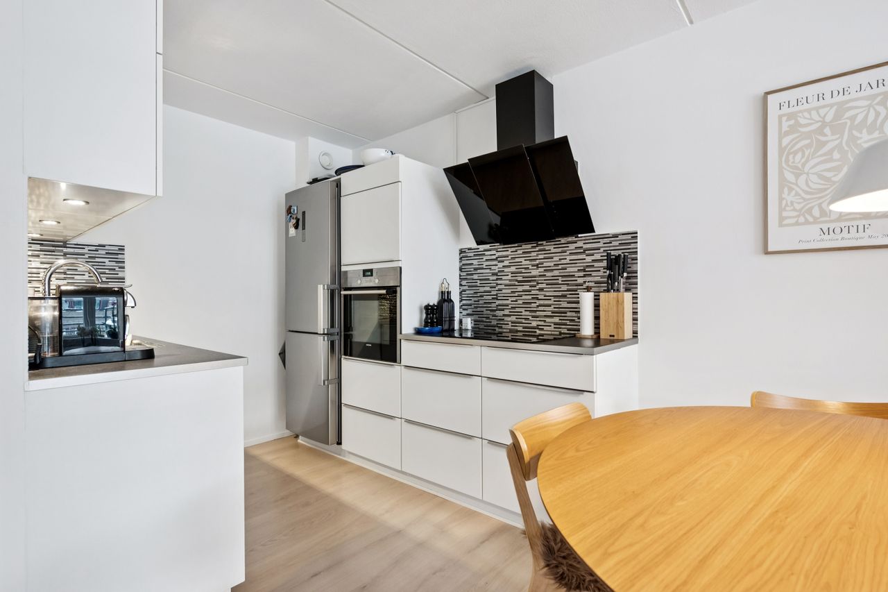 Lejlighedens opholdsrum består af en lys og indbydende stue med plads til både spisebord og sofaarrangement. Stuen fungerer som boligens naturlige samlingspunkt og har direkte forbindelse til det flotte og funktionelle køkken, som er praktisk indrettet med god bord- og skabsplads og en åben planløsning.